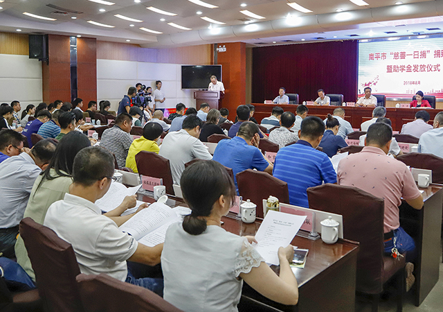 8月16日,南平市“慈善一日捐”捐贈大會暨助學金發(fā)放儀式在延平舉辦,市委常委、統戰(zhàn)部長莊莉,市慈善總會會長、福建圣農發(fā)展股份有限公司董事長傅光明出席活動。