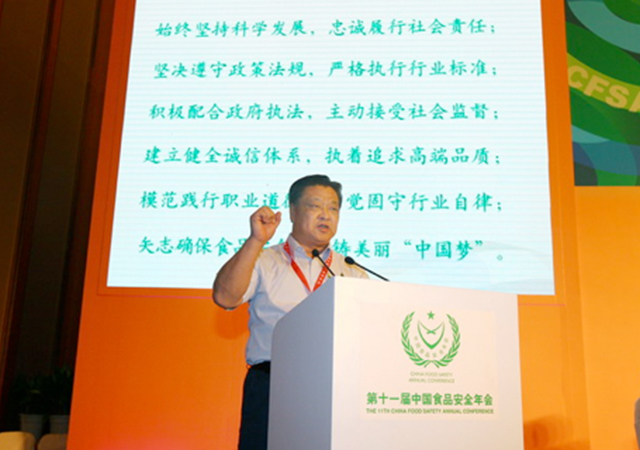 在15日的開幕式上,全國政協(xié)副主席齊續(xù)春,十屆全國人大常委會副委員長顧秀蓮等國家領(lǐng)導(dǎo)人、以及國務(wù)院相關(guān)部委辦局主管領(lǐng)導(dǎo)出席會議并分別作重要講話,并為食品安全領(lǐng)域中做出杰出貢獻(xiàn)的全國食品安全十大企業(yè)家和十強(qiáng)企業(yè)頒發(fā)了獎盤。傅光明董事長從中國食品安全年會名譽(yù)主任顧秀蓮手中接過銀質(zhì)獎盤,獎盤的光芒在臺上閃耀,一份沉甸甸的責(zé)任在手中緊握。傅光明董事長會上還被大會組委會一致推薦為大會《2013食品安全宣言》領(lǐng)誓人,邀請他在主席臺上帶領(lǐng)企業(yè)代表共同宣誓。開幕會結(jié)束后,參會領(lǐng)導(dǎo)共同參觀了與本屆年會一起舉辦的第九屆中國食品博覽會。