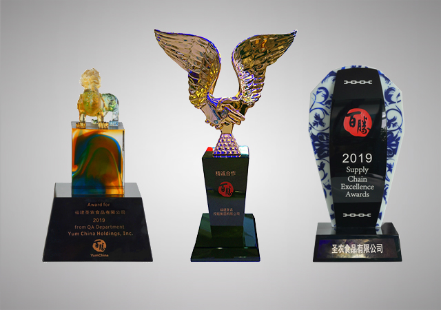 4月12日在“敏捷創(chuàng)新 攻堅制勝——2019百勝中國供應(yīng)鏈合作伙伴大會”上,圣農(nóng)斬獲“精誠合作獎”、“百勝中國質(zhì)量獎”、“卓越供應(yīng)鏈獎”三項大獎。