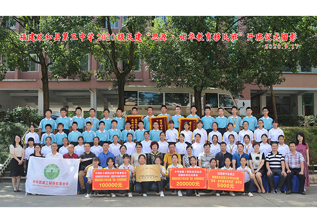 2012年,為了讓偏遠山區(qū)的貧困家庭孩子接受更為規(guī)范、完整的教育,學(xué)習(xí)知識技能后反哺家鄉(xiāng)。民建中央、中華思源工程扶貧基金會聯(lián)合實施“思源•教育移民計劃”。 2017年9月18日下午, “2017級思源•佑華教育移民班”開班儀式在政和縣三中舉行。開班儀式上,傅芬芳總裁慷慨解囊捐款10萬元,并承諾從2017年起每年捐款10萬元,幫助移民班學(xué)生完成學(xué)業(yè)。