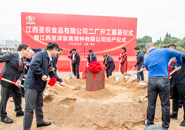 2021年10月18日上午,圣農(nóng)食品十廠開工暨資溪祖代種雞場投產(chǎn)儀式在資溪舉行。圣農(nóng)發(fā)展股份有限公司董事長傅光明、常務副總裁陳劍華、周紅,副總裁肖凡,資溪縣委書記吳淑珍參加了儀式,撫州市委副書記李高興下達開工令。